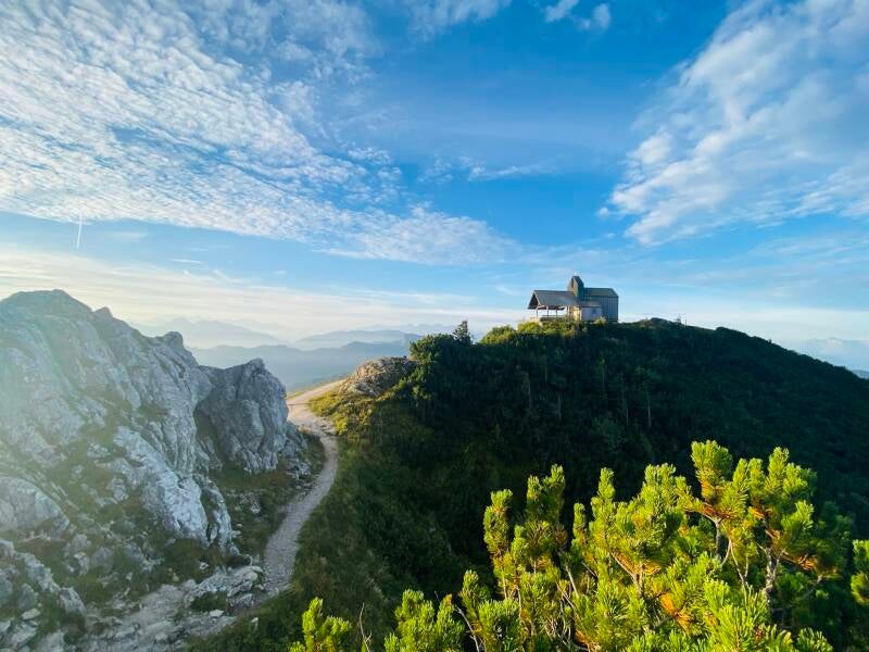 Für alle, die es nicht zu Fuß bis zum Gipfel des Hochfellns schaffen, jedoch gerne ihren Gipfelkreuz-Moment mitnehmen möchten, bietet sich das kleine Gipfelkreuz ca. 15min oberhalb der Bründlingalm an. :)